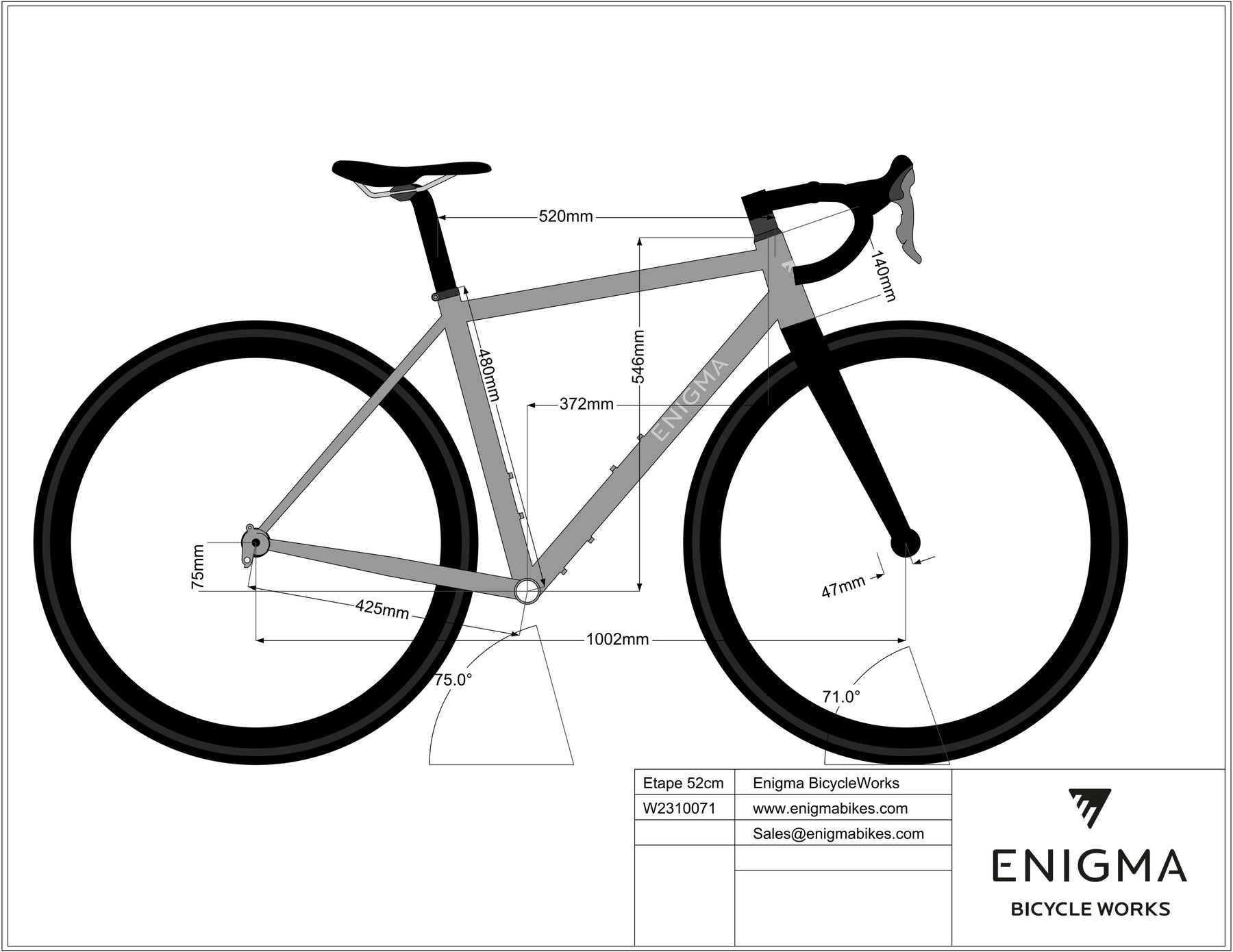 The Enigma Etape is a highly versatile four-season titanium all-road bike, designed for comfort and reliability on long days in the saddle. Equally at home as a dependable winter trainer or an audax companion, it offers eyelets for full mudguards and racks and tyre clearance up to 35c (without guards).