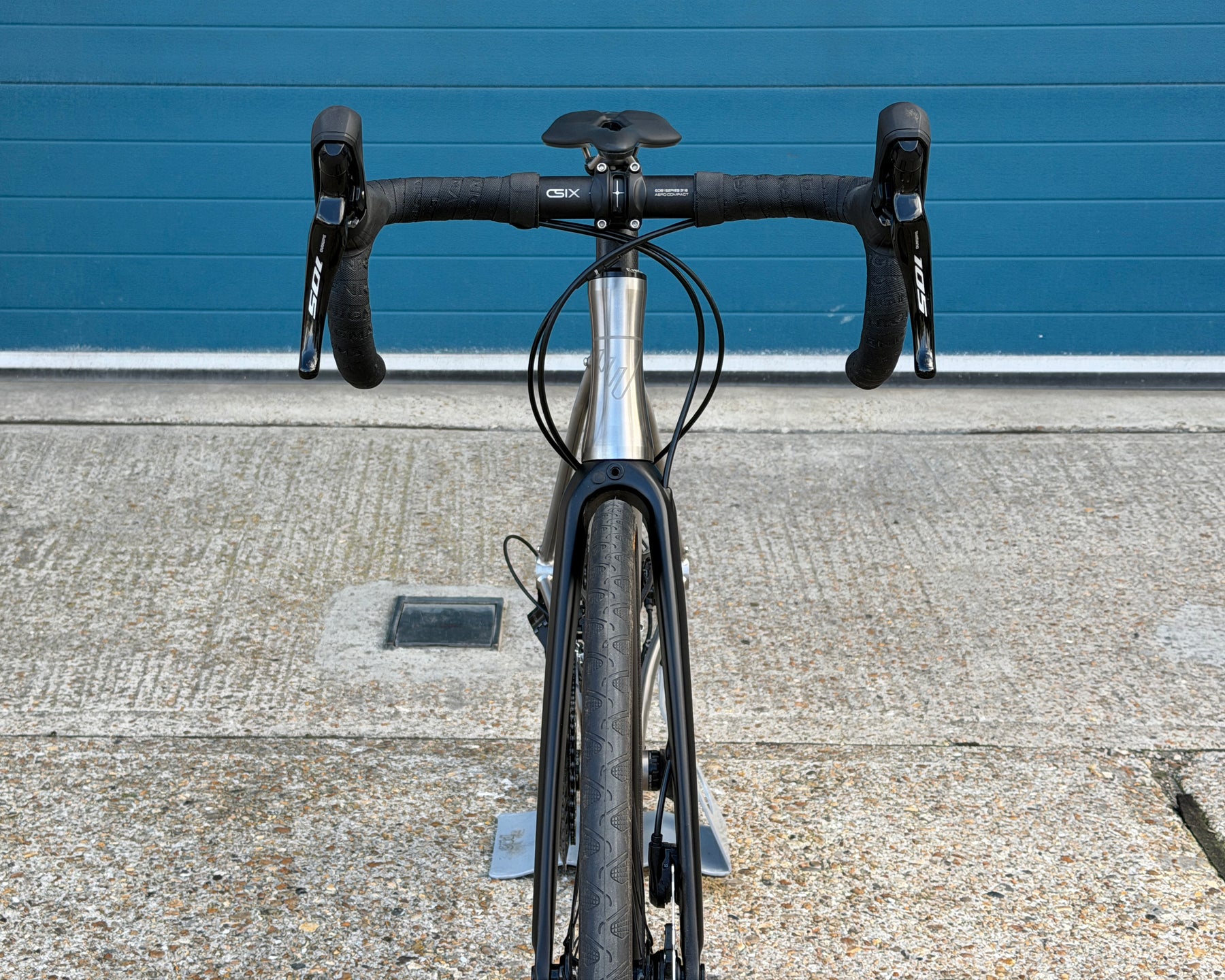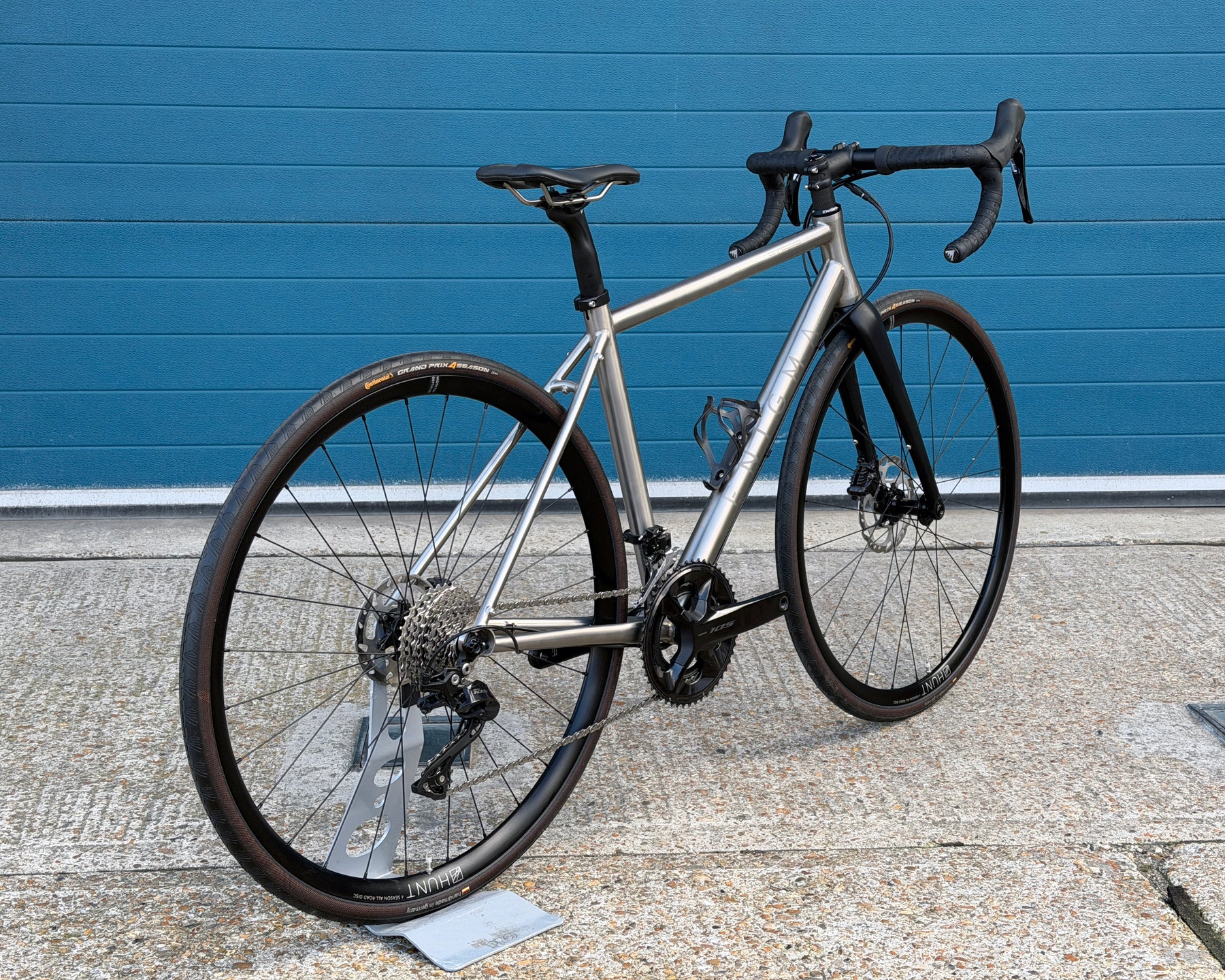 This 50cm ex-demo bike has been lightly used for demonstrations but remains in very good condition. Finished in a refined brushed titanium with bead logos, it blends durability, comfort and classic Enigma styling for year-round riding.