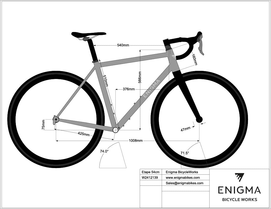 The Enigma Etape is a highly versatile four-season titanium all-road bike, designed for comfort and reliability on long days in the saddle. Equally at home as a dependable winter trainer or an audax companion, it offers eyelets for full mudguards and racks and tyre clearance up to 35c (without guards).