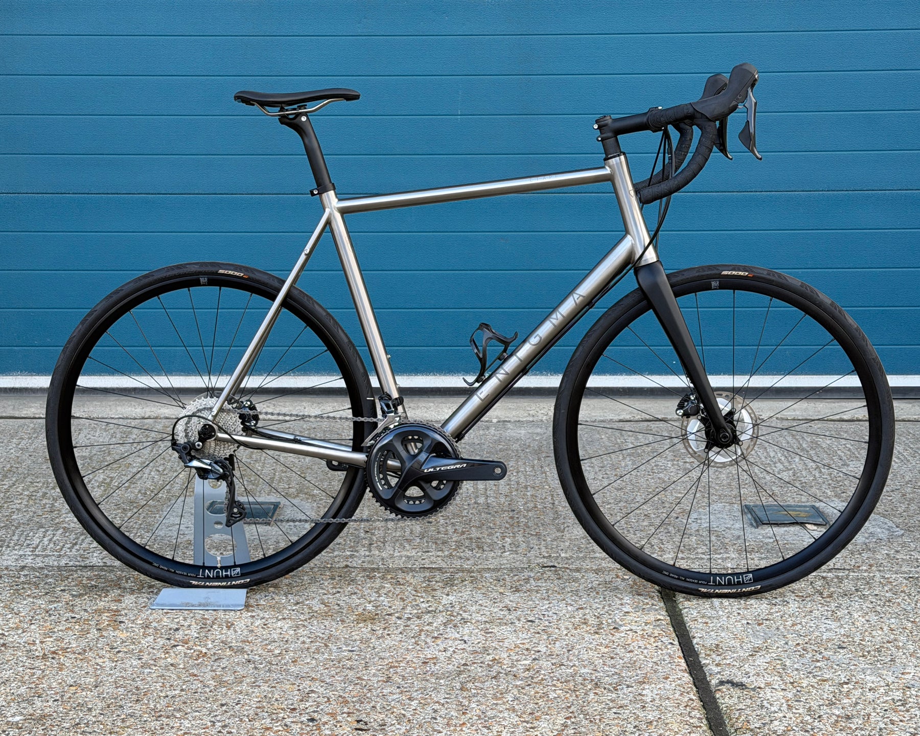 This 60cm ex-demo bike has been lightly used for demonstrations but remains in very good condition Finished in a refined brushed titanium with bead logos, it blends durability, comfort and classic Enigma styling for year-round riding.