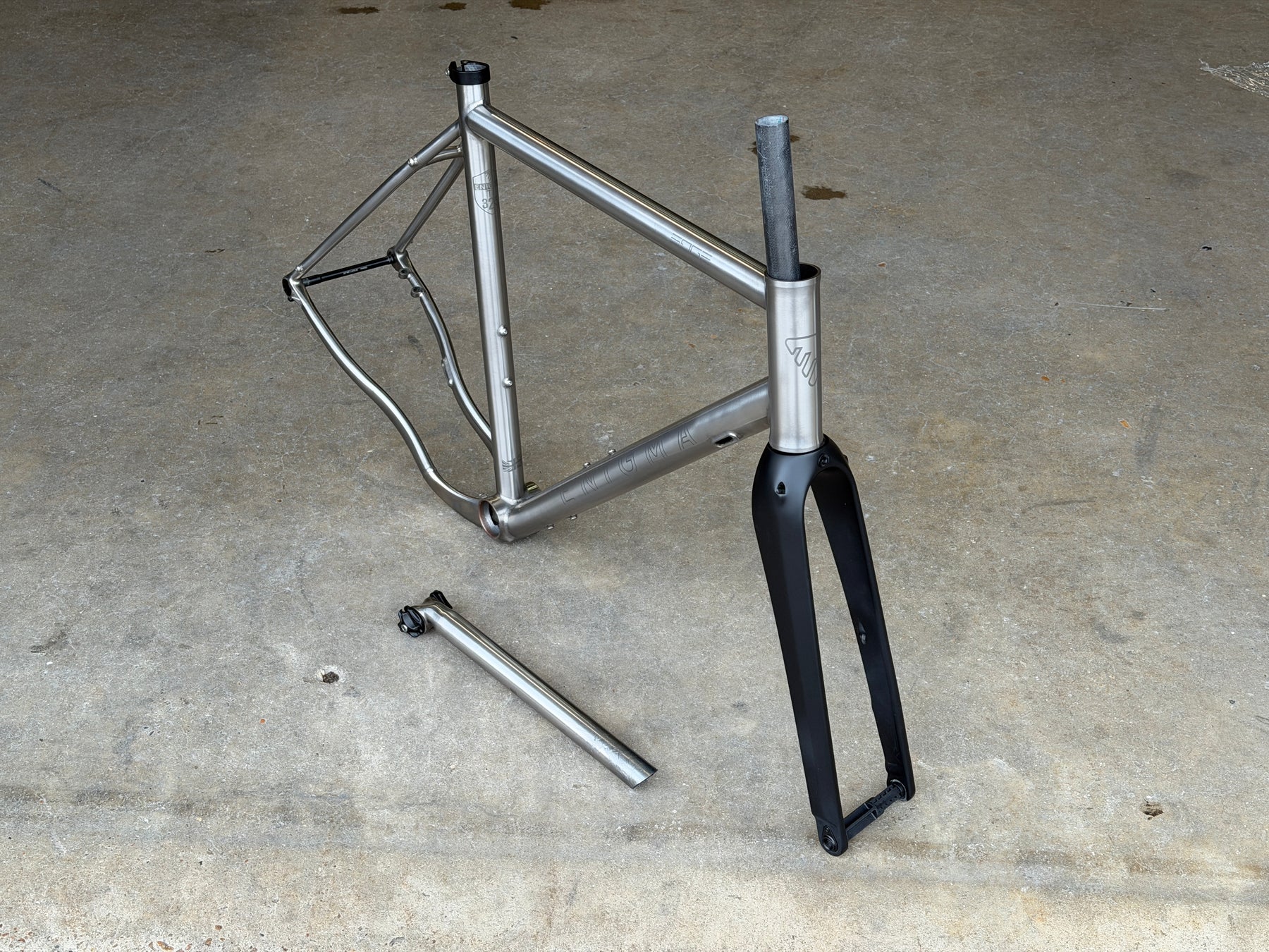 This particular frame has been ridden and subsequently refurbished and is supplied with a matching titanium seatpost. Offering excellent value for a high-performance titanium gravel platform.