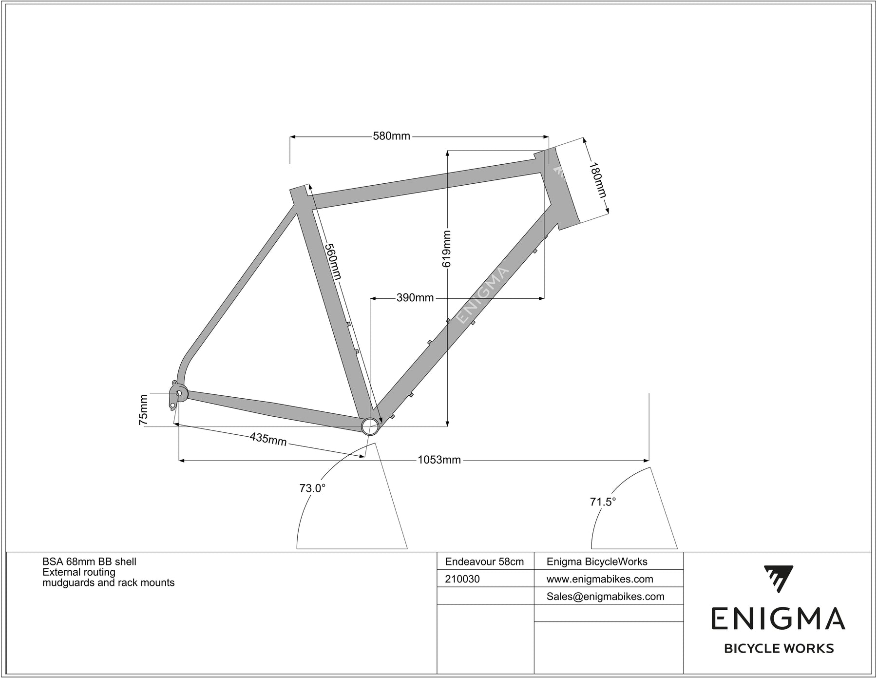 - Mounts: Mudguard, rack, and top tube with custom fittings